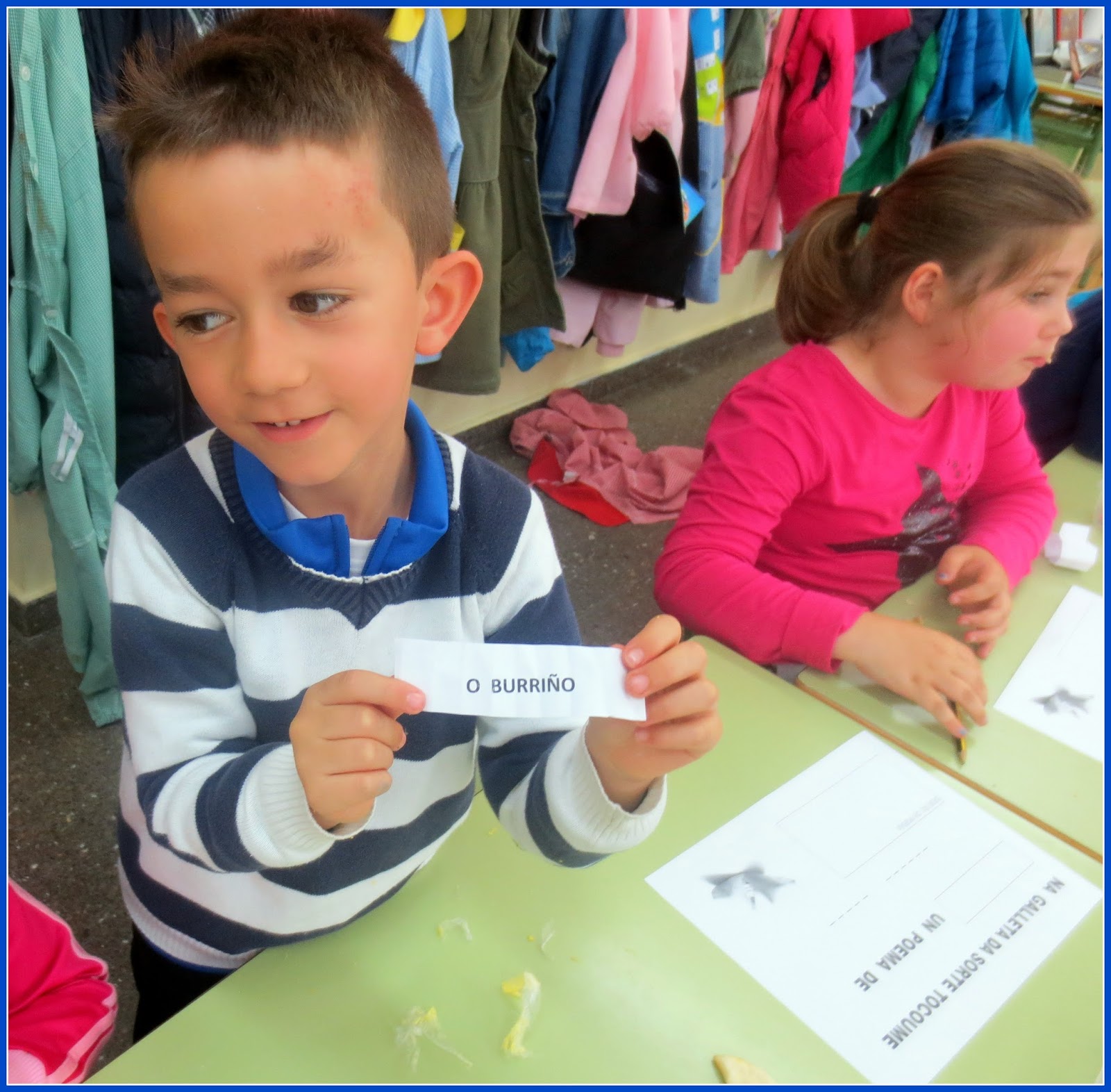 E, finalmente, abrimos a empanadilla co poema, comimos as migallas todas que quedaban enriba da mesa e fixemos un debuxo do que nos tocou.